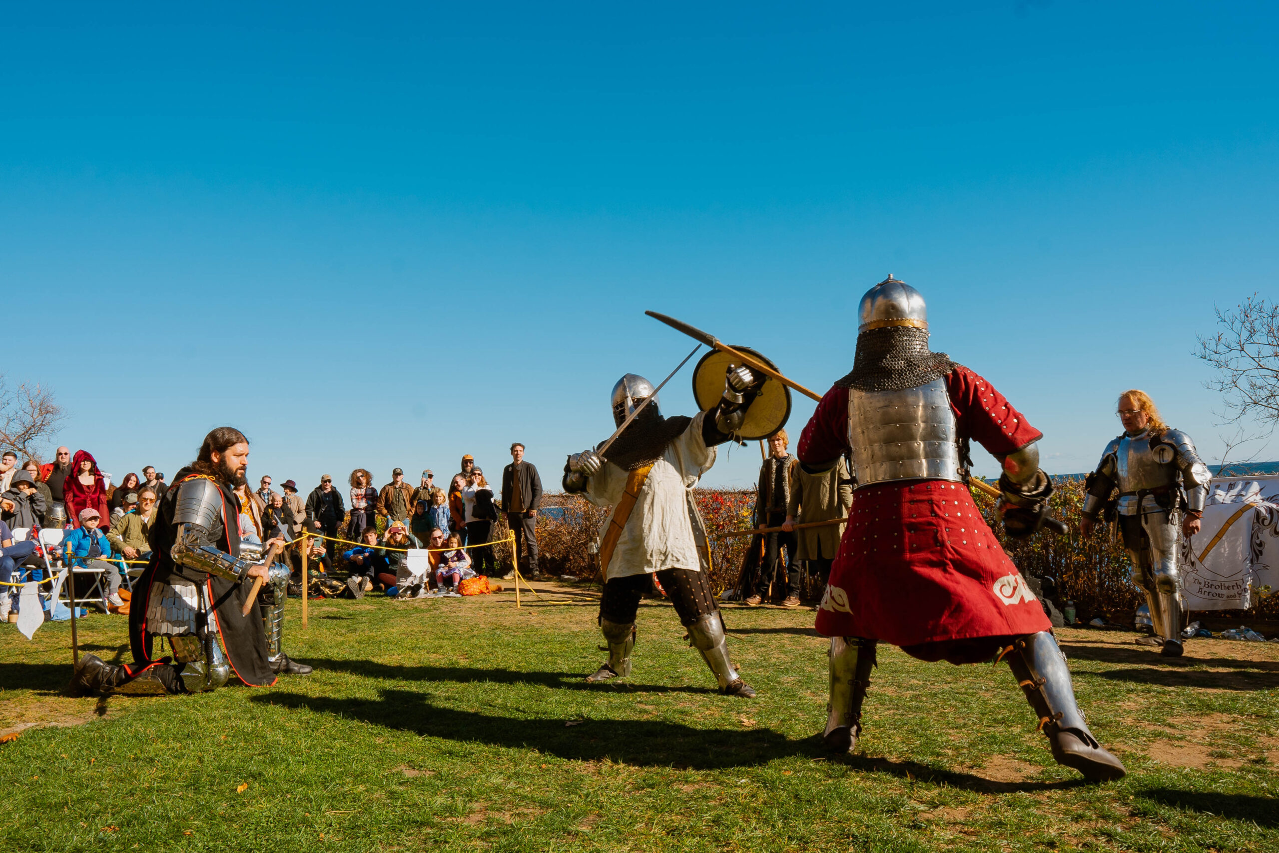 Experience the excitement of The Brotherhood of the Arrow and Sword as they return with their high-energy armored combat demonstrations, bringing the medieval battlefield vividly to life. Enjoy captivating performances from the L.I.A.R.s, who will fill the air with sea shanties, alongside a hulahoop artist, a storyteller, a wandering harpist, a bubble faery, and other enchanting entertainers.